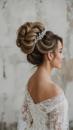 Now, let’s zoom in on that bling! This sparkling hair accessory is basically a crown for your bun, making you feel like a total queen without having to deal with an actual heavy tiara. It’s like your hair decided to throw a party and invited all its sparkly friends to hang out. Imagine trying to take a selfie with hair this fabulous – the light would just *catch* that shine perfectly, making everyone else’s everyday ponytail look a little sad. This isn’t just a wedding hairstyle; it’s a whole vibe that says, “I’m ready for my close-up, whether it’s walking down the aisle or just confidently walking into homeroom on a really, *really* good hair day!”
