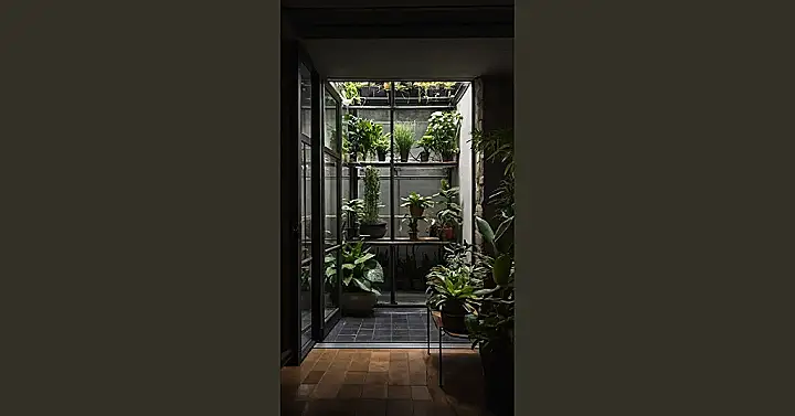 This indoor garden is seriously next level! It’s like a mini-jungle right inside a house. Imagine having a cozy spot where you can hang out with your plants and get a dose of nature without even leaving your house. You could totally bring a book in here and chill with the plants, feeling like you’re in a lush rainforest.