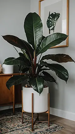 This giant green beauty in the picture is practically a supermodel of the houseplant world. Look at those glossy leaves! It’s rocking that white pot and fancy gold stand like it’s on a runway, just chilling in your living room. Having a big, leafy indoor friend like this is like bringing a little slice of the jungle right into your space, but without the humidity or the surprise spider encounters. Plus, it’s always there, looking cool, judging your questionable snack choices in silence.