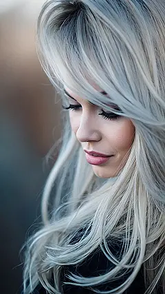 That hair! Seriously, it’s like a waterfall of shimmering, icy goodness. It’s so gorgeous, it practically glows! I bet this person gets complimented all the time – maybe even by strangers who just have to stop and admire the amazing silver-blonde perfection. I’d bet even a grumpy cat would crack a smile seeing this magnificent mane. Maybe it’s the perfect hair color for sneaking into a movie theater without paying – they’d be so busy staring at your hair, they’d forget to check your ticket!