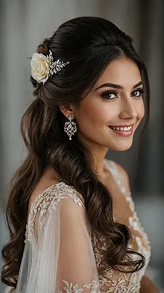 Being a bridesmaid means your hair has a serious mission: survive the day! It needs to look fabulous for photos, handle hugs without losing its shape, and somehow stay looking fresh from walking down the aisle to dancing the night away. A half-up style like this is pretty genius because it looks super elegant but also keeps hair out of your face when you’re trying to help the bride or just navigate the wedding cake line. You definitely need a style that can handle all the fun chaos and still have you feeling confident and glamorous!