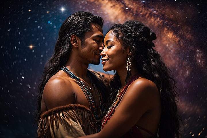 Once upon a time, in the vastness of the Great Plains, an Ojibwe warrior named Misko fell in love with the most beautiful maiden he had ever seen. But she was no ordinary maiden; she was Ogimakwe, a celestial being who had descended from the stars, leaving her celestial abode to explore the wonder that was Earth.