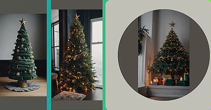 This Christmas tree is looking festive, with its twinkling lights and colorful ornaments. But what’s that on top? It’s a big, shiny star! It’s almost like the tree is wearing a crown, ready for a Christmas party. You can almost picture the delicious smells of Christmas cookies and gingerbread filling the air around this tree.
