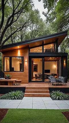 This place looks less like a house and more like a super cool secret hideout, perfect for when you’re finally done with, well, everything! Think about it: after decades of maybe working, doing chores, and probably folding laundry (so much laundry!), you get to escape to this stylish wooden box surrounded by trees. It’s like the universe’s way of saying, “Congrats, you survived! Here’s your reward: unlimited napping and zero responsibility.” You can practically see yourself kicking back on that deck, maybe trying to remember the names of all your old teachers, and just enjoying the peace and quiet that comes with peak adulting retirement mode.