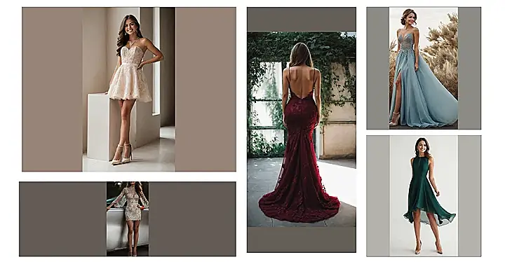 But hold your horse-drawn carriage! We’re not just draping you in colors and lengths; we’re considering styles, too! Our ideas cater to all your unique preferences—whether you fancy a simple, sleek design or something more intricately adorned. A combination of textures and patterns can make all the difference, turning an ordinary dress into an extraordinary statement piece.