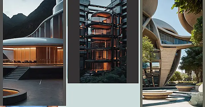 Imagine a world where buildings are like giant spaceships, all sleek and curvy with windows that shine like diamonds. This picture is like a peek into that future, and it’s super cool! The buildings look like they’re from a sci-fi movie, with their smooth lines and funky shapes. They’re so futuristic, it’s almost like they’re ready to blast off into space.