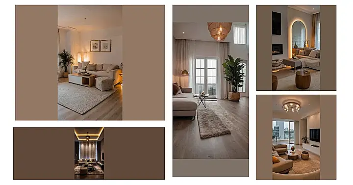 This living room definitely knows how to set the mood! Forget those blinding overhead lights that make your house feel like a dentist’s office where you’re always squinting. Here, the soft glow from those cool tall lamps and the warm puddles of light make you just want to sink into that giant sofa. It’s like the entire room is giving you a warm, cozy hug, silently telling you to ditch the homework and grab some popcorn for a movie marathon. Nobody wants to find their missing remote in the pitch black, or worse, under the glare of a thousand suns, right? This place gets it.