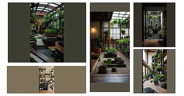 Imagine a world where it’s always sunny, even when it’s raining outside! This indoor garden is like a little vacation spot for plants, with a cool, clear roof that lets in all the sunlight, making it a lush and leafy paradise. It’s like a plant spa! You can see the plants are totally chillin’, soaking up the rays and looking super happy.