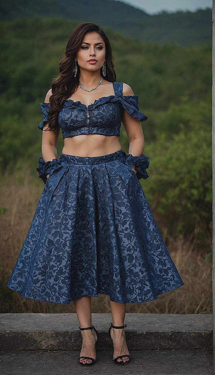 #1 Elegant Navy Floral Crop Top and Midi Skirt Set – Summer Romance