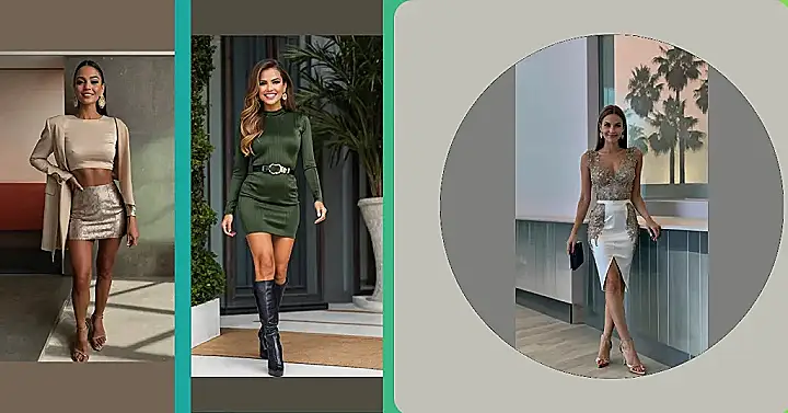 That outfit is seriously killer! A silky smooth champagne skirt paired with a sleek black top? You’re practically guaranteed to be the best-dressed at the office holiday party. Forget the awkward small talk with Uncle Barry – you’ll be too busy accepting compliments and plotting your escape to the dessert table. Think shimmering elegance meets “I’m ready to dance the night away (and maybe accidentally spill punch on someone).”