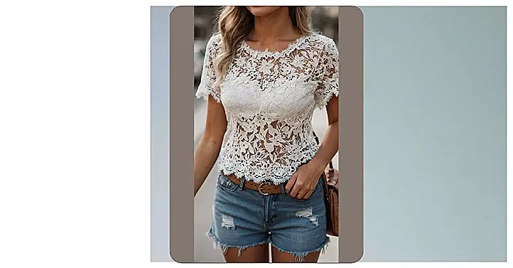 Who knew looking this good could be so breezy? This outfit is basically a masterclass in “casual chic,” all thanks to that gorgeous white lace top. It’s got those intricate floral patterns that make it look super fancy, but then BAM! You throw it on with some comfy denim shorts, and suddenly you’re ready for anything from a sunny afternoon stroll to grabbing ice cream with friends. The delicate lace detail on the sleeves and neckline just screams “I put thought into this, but also, I woke up like this.”