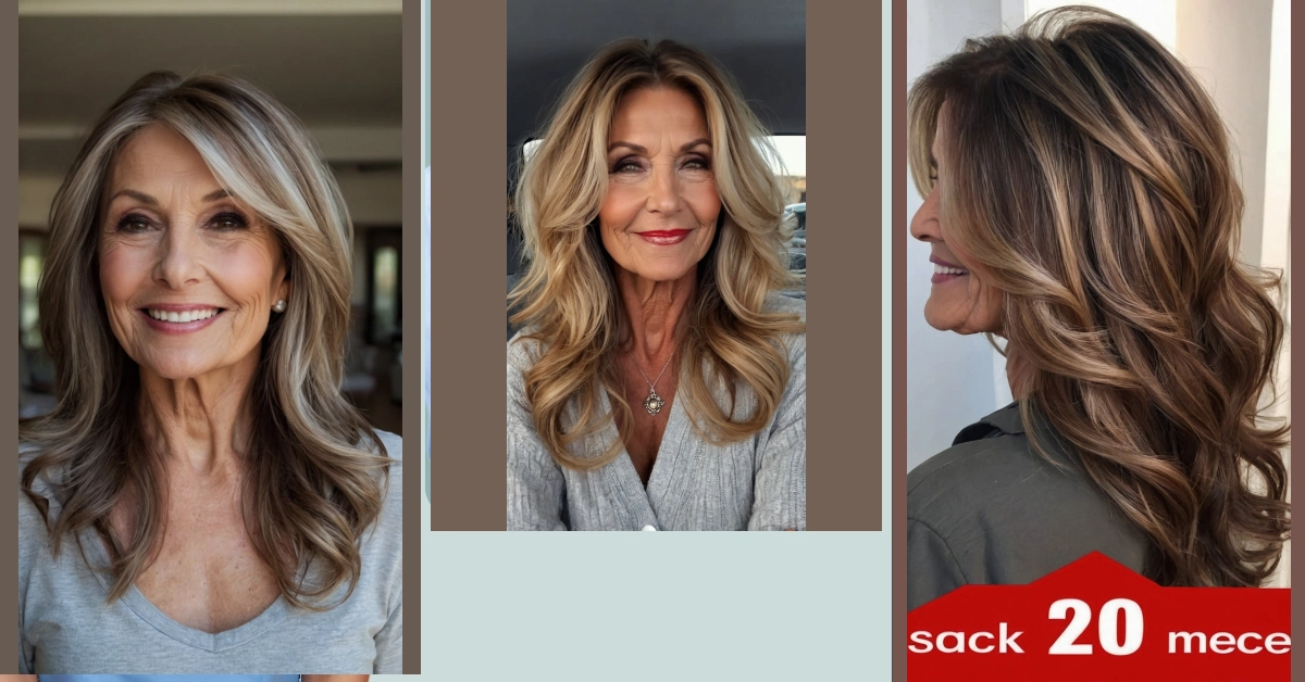 This lady’s got hair that’s got more layers than a birthday cake! It’s long and flowing, with some lighter blonde highlights that really make her eyes pop. It looks super stylish and totally age-appropriate – she’s rocking this look like it’s nobody’s business. You know, it’s like, she’s saying “Hey, I’m over 50, and I still look amazing!”