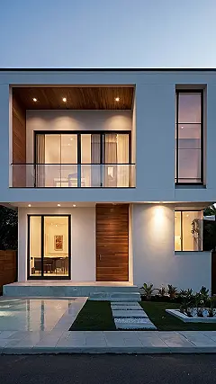 Check out this super sleek house! It’s like the architect took a deep breath, said “less is more,” and then went to town. You’ve got clean lines, big windows, and just enough plants to keep things from looking like a robot’s house. If you’re the kind of person who hates clutter and loves having everything in its place, this is definitely your dream home. Imagine how easy it would be to clean – no dust-collecting knick-knacks here!