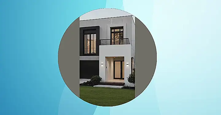 This house is like the opposite of a clown’s car: it’s all about clean lines and simple shapes. No crazy colors or decorations here! Just smooth white walls, a sleek door, and a few strategically placed plants. It’s kind of like a blank canvas – perfect for someone who wants to express their personality through their furniture and art, without being overwhelmed by a busy design.