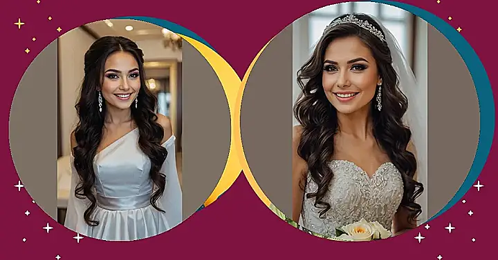 Getting ready for a wedding when the sun’s still high in the sky feels super exciting, like a fancy brunch but with way more sparkle and a lifetime commitment! You want your hair to look amazing under all that natural light, not like you just rolled out of bed, even if you secretly wish you could. This bride is totally rocking the perfect daytime look with her gorgeous, wavy hair and that dazzling tiara, looking ready to glow brighter than any Instagram filter.