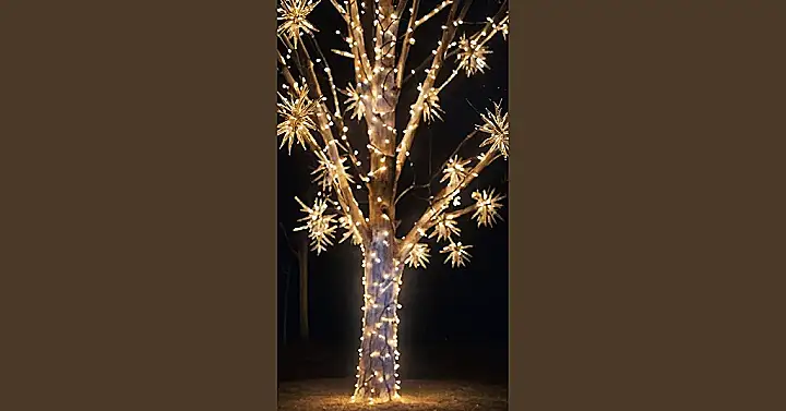 That tree’s got more sparkle than a disco ball at a unicorn convention! Seriously, look at those outdoor Christmas lights—they’ve transformed a plain old tree into a dazzling winter wonderland. It’s like someone sprinkled magic dust (or maybe a whole bag of fairy lights!) all over it. I bet even the neighborhood squirrels are impressed! Imagine sitting by the warm glow on a chilly night, sipping hot cocoa and enjoying the festive scene. Who needs a fireplace when you’ve got this much holiday cheer?