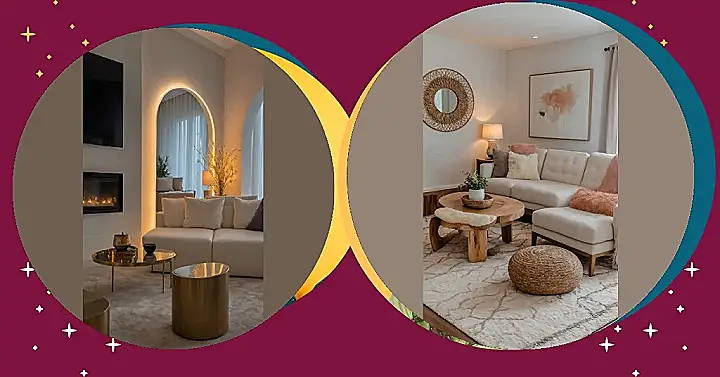 Who knew living room lighting could be this cool? Beyond the super-chic arch, you’ve got natural light trying its best to peek through those dreamy curtains, mixing with the gentle glow from the table lamp. It’s like the room is softly whispering, “Relax, buddy.” Even the shiny gold tables are doing their part, bouncing light around like tiny disco balls, but in a totally sophisticated way. This setup is so perfectly lit, you could probably host a fancy tea party or just successfully find the remote without tripping. It proves that good lighting isn’t just about seeing; it’s about making your space feel like a warm hug.