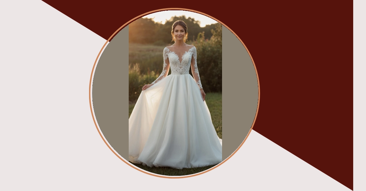 Planning a wedding? Picking a dress is like choosing your spirit animal, but way fancier! Check out this dreamy long dress. It’s got sleeves with lace that look like they were drawn by fairies, and the skirt? Total princess vibes. Just imagine twirling around in that thing during your first dance – you’ll be the star of your own rom-com!
