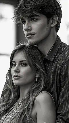 This picture features a couple who’ve absolutely mastered the art of the intense, thoughtful stare – you know, the kind where they look like they’re contemplating the mysteries of the universe, but honestly, they might just be wondering whose turn it is to do the dishes. Their black and white aesthetic adds a touch of classic cool, making them seem super sophisticated, even if they’re secretly just stressed about their phone battery dying. It’s the perfect blend of serious and stylish, giving off major “we’re deep, but also probably hungry” vibes.