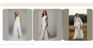 Planning a wedding? Picking a dress is like choosing your spirit animal, but way fancier! Check out this dreamy long dress. It’s got sleeves with lace that look like they were drawn by fairies, and the skirt? Total princess vibes. Just imagine twirling around in that thing during your first dance – you’ll be the star of your own rom-com!
