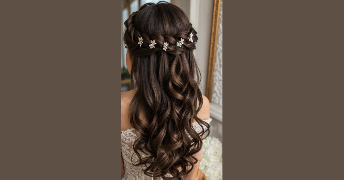 Picking out hairstyles for a wedding isn’t just about looking pretty; it’s about finding something that can handle the chaos! Will it survive the happy tears? The enthusiastic dancing? The moment someone unexpectedly throws rice? This half-up style with those gorgeous curls and that sparkling accessory looks like it’s up for the challenge. It’s the kind of hair that says, “Yes, I’m here for the wedding, and yes, my hair is looking fabulous and hopefully won’t end up in my soup!”
