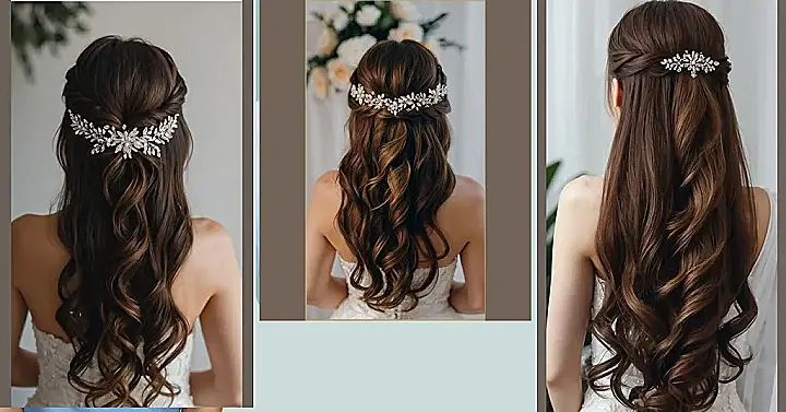 Planning your wedding look can be as wild as trying to solve a quadratic equation, but don’t stress! Long hair gives you tons of options. Just imagine rocking those cascading waves down the aisle, topped with a sparkly headband that screams “I’m ready to party!” Plus, you can still totally headbang at the reception without messing up your whole ‘do.