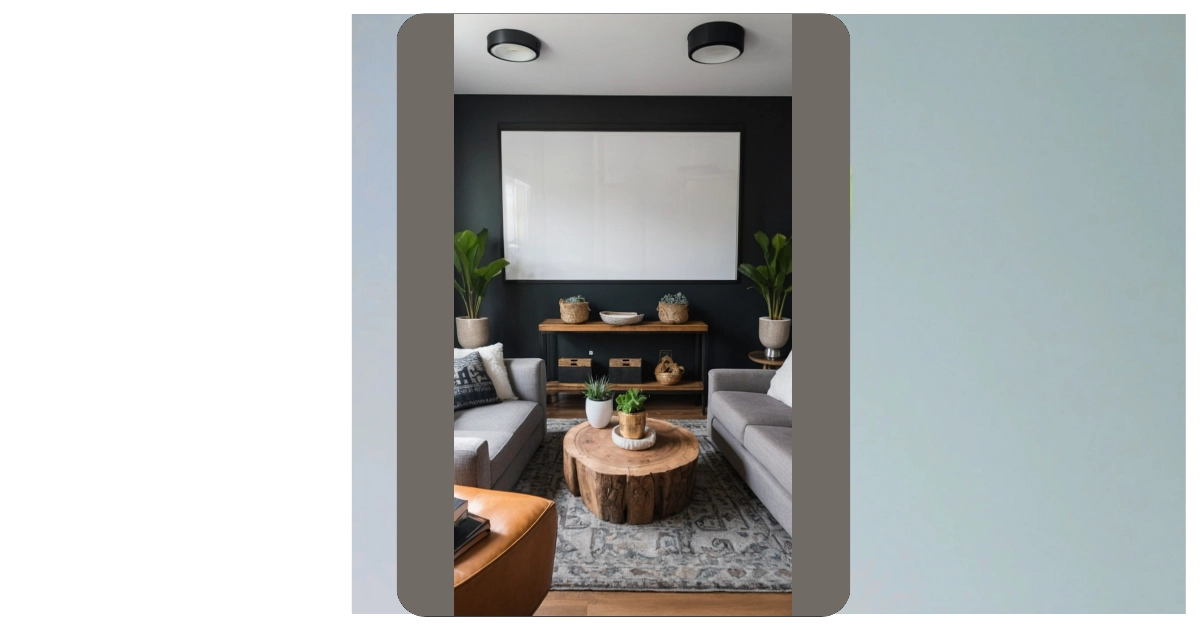This living room is proof that you don’t need a king’s ransom to feel like royalty! Look at that amazing, rustic coffee table‚Äîit’s like a giant tree stump got a makeover, and it totally steals the show. The dark walls add a touch of sophisticated mystery, while the comfy sofas and cozy rug make it feel super inviting. It’s all about clever choices, like using simple baskets for storage instead of expensive decorative boxes. This room shows you can definitely get a fancy vibe without emptying your piggy bank!