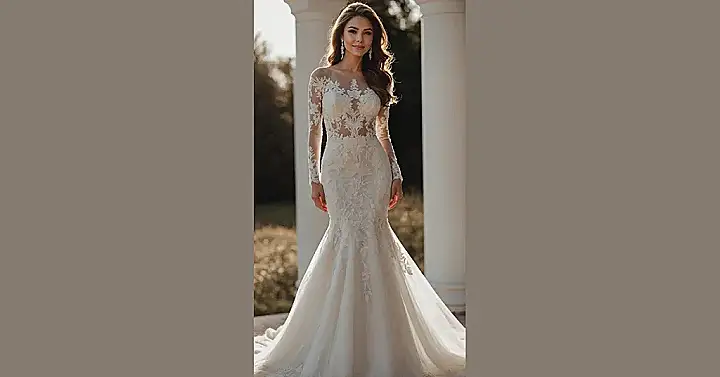 This mermaid wedding dress in the picture is giving us major under-the-sea-but-on-land vibes! That shape is super cool, like you just swam out of the ocean ready to say “I do.” Just remember, while it looks amazing gliding through sunlight like she is, actual swimming in this might be a little tricky. You might feel more like a glamorous penguin waddling down the aisle, but hey, at least you’ll look like a total queen of the sea!
