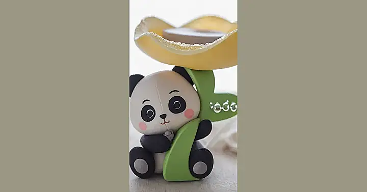 Forget plain old trays! This little black and white friend, cheerfully holding up what looks like a giant, sunny yellow petal, is here to prove that useful can also be utterly delightful. It’s the kind of room decor that makes you smile every time you glance at it, proving that even small items can have big personality. So, whether it’s on your desk, nightstand, or a shelf, this panda isn’t just decorating; it’s bringing some serious happy vibes and making your room feel a little bit more like you.