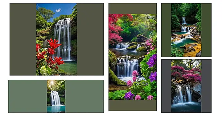 The cool hues of blues and greens in the design create a sense of calm and serenity, like a hidden oasis tucked away from the chaos of the world outside. With each passing moment, the waterfalls seem to come alive, beckoning you to take a moment to pause, breathe, and simply be. Whether you choose to sit and meditate in their presence or let your mind wander to distant horizons, these wallpaper concepts offer a peaceful escape from the hustle and bustle of daily life.