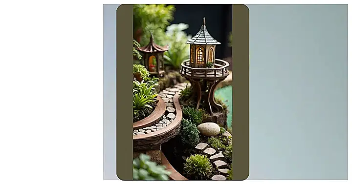 This miniature garden design is seriously adorable! Imagine being a tiny person living in this little world. You’d stroll across the cute pebble pathway, relax under the itty-bitty umbrella, and maybe even take a dip in the teeny-tiny pond! It’s like a whole landscape crafted just for tiny adventurers (or anyone who appreciates awesome miniature details).