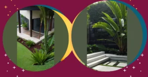 Notice those awesome wooden steps disappearing into all the greenery? It’s like they lead to Narnia, but probably just to a really stylish backdoor. And those smooth pebble paths? They’re practically begging you to skip across them, or at least look super cool while you casually stroll to grab the mail. Plus, that giant tree totally looks like it’s been holding epic secrets for centuries, offering the perfect shady spot for a dramatic selfie or just escaping the sun when your phone battery is at 1%.