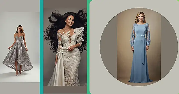 This isn’t just a dress; it’s a whole vibe! Sporting a gorgeous dusty blue color and intricate lace details on the top, this outfit screams ‘classy wedding dress’ whether you’re walking down the aisle or just showing up to celebrate. The off-the-shoulder look and flowing skirt make her look like she just stepped out of a fairytale, ready to make every head turn (in a good way, of course!). It’s the kind of gown that makes you feel super elegant and ready to dance all night, probably even without tripping.