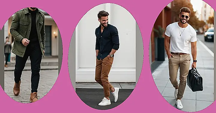 This guy is rocking the casual look. A simple white tee, some khaki pants, and a snazzy leather bag make him look like he’s ready to conquer the world, even if it’s just a trip to the coffee shop. He’s got that relaxed vibe that’s perfect for everyday wear. Plus, those white sneakers just scream “I’m cool and comfortable, and I know it!” He’s definitely got that “effortless chic” thing going on.