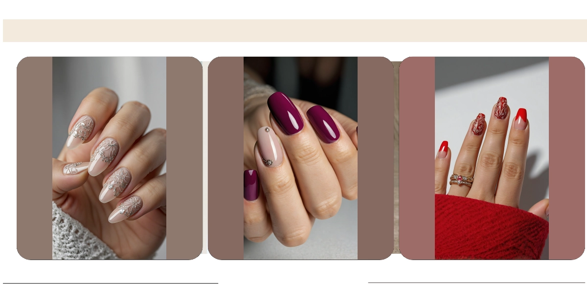 Who knew your fingertips could be such chatterboxes? These aren’t just any nails; they’re ‘gossip nails’ that are guaranteed to get people talking about your amazing style. The intricate patterns on those accent nails are like tiny, beautiful secrets waiting to be admired, while the crisp red tips on the others add that pop of confidence. Paired with that cozy red sweater and those sparkling rings, these nails complete a look that’s totally ready to drop jaws. So next time you want to make a statement without saying a word, let your nails do all the talking – and trust us, they’ll have plenty to ‘spill’!