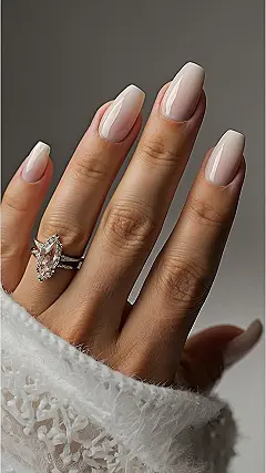 Check out these nails! The super cool thing right now is this ombre thing, where it’s light pink at the bottom and fades into white at the tip. It’s like a natural glow-up for your hands, and you can totally DIY it. Just imagine how awesome these would look with your favorite outfit for the weekend.