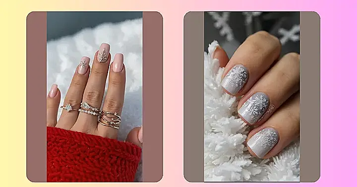 Forget those boring winter blues – these nails bring on the winter wonderland vibes in the most adorable way. Each tiny snowflake is a masterpiece of nail art, and the soft grey background is the ideal backdrop for a wintery scene that’s pretty enough to make even Jack Frost jealous. They’re so chic and stylish, you might just forget about all those last-minute holiday assignments!