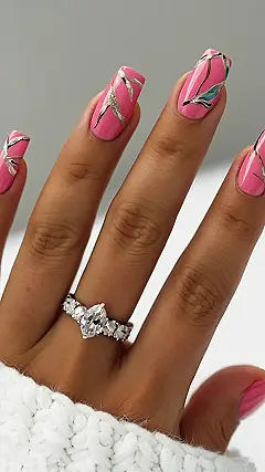 Think of these nails as your personal little garden, but instead of dirt, you’ve got awesome pink polish. The design is giving major chill vibes, like a fancy, artsy tattoo, but only on your nails. Imagine showing off these amazing nails during your next TikTok video, or flashing them while you’re acing your pop quiz! Prepare for all the compliments because these nails are the total package.