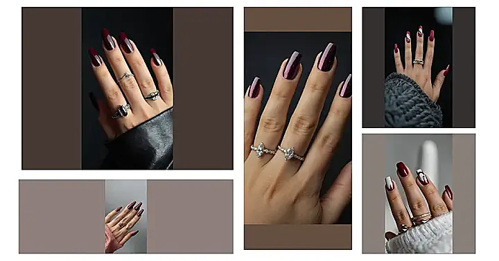 Now, if you’ve got a wild side, prepare for some fun! How about mixing in some black to create striking contrasts? Black accents atop burgundy will have you feeling edgy and fierce. And why stop at just one color? Introduce chrome elements to amp up the glam factor and have everyone asking, “Who did your nails?”