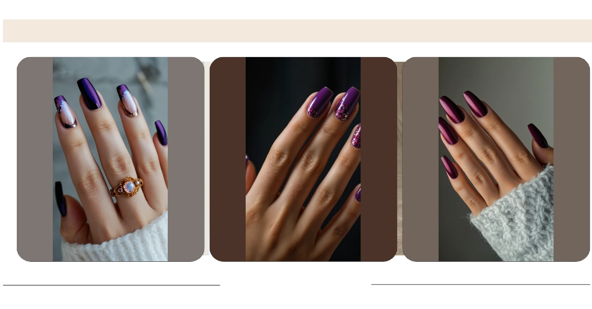 When it comes to designs, the possibilities are endless! Dark purple paired with a touch of black can deliver an edgy sophistication that’s hard to beat. Mix in some artistic elements and you’ll have nails that are both stylish and unforgettable. Just imagine sitting at a coffee spot and seeing someone do a double-take at your fabulous nails—priceless, right?