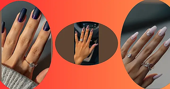 Those nails are seriously rocking a gorgeous shade of purple! It’s like a dark berry with a hint of shine, which is totally perfect for fall. It’s almost like the color of a fancy grape you’d find at a fancy wine tasting. But let’s be real, this isn’t just about nails. That ring on the finger is absolutely stunning! That diamond is HUGE! I wonder if it’s a new engagement ring – maybe a new lucky couple is about to have a fairytale wedding! They’re both so fancy and shiny, it’s like they were made for each other!