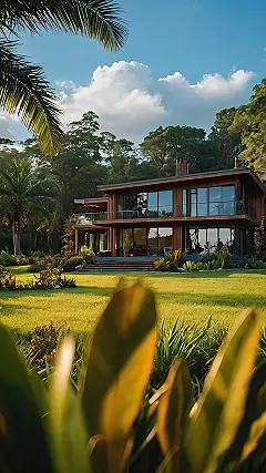 This house is like something out of a dream! It’s got all the things you could ever want for a cozy and comfortable home: big windows to let in lots of light, a spacious yard perfect for lounging around, and a path that winds its way through the lush green garden, inviting you to explore. Maybe there’s a swimming pool hidden somewhere in the back, or maybe it’s a secret path leading to a secluded beach? Either way, this place is a dream come true, and it’s making me want to pack my bags and take a vacation right now!
