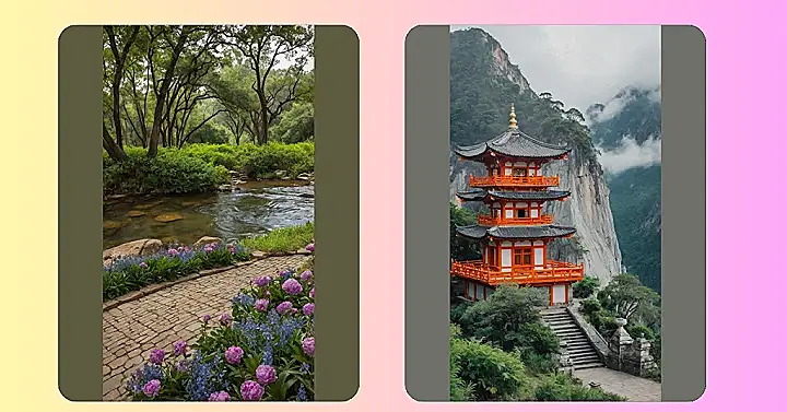 Then there’s that perfect little cobblestone path, practically begging you to stroll along it, maybe even skip a little. Those flowers are having a full-on color party, with bright pinks and cool blues making the whole scene pop like confetti. This spot is so picture-perfect, you almost expect a fairy to pop out from behind a peony, or at least for a chill lo-fi beat to start playing in the background. It’s truly one of those incredible places that makes you wonder if your backyard just needs a serious glow-up to compete!