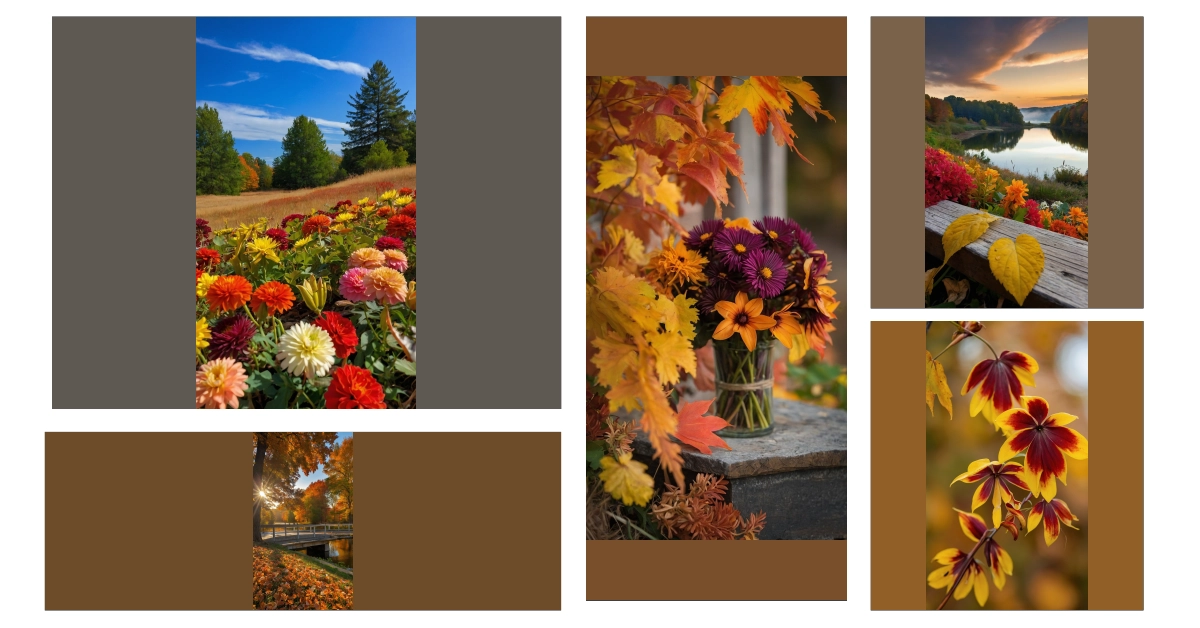The picture shows a beautiful bouquet of flowers in a vase, surrounded by the vibrant colors of autumn. It’s like a little piece of nature, brought indoors to brighten up a home. The flowers are a mix of purple, orange, and yellow, just like the leaves on the trees outside. They all seem to be saying “Goodbye, summer, hello, fall!”
