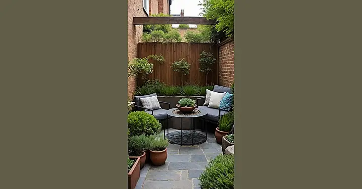These small garden spots might not host a full marching band practice, but they’re perfect for maximum chill vibes. Look at that cozy seating area in the image – totally screams “hangout here and do nothing important.” You can squeeze in a spot for kicking back, maybe even something cool like that fire pit look-alike, without needing a treasure map to find your way back inside. It’s your personal oasis where the biggest decision is which snack to bring out. Easy to keep tidy, big on style, and your friends will be jealous.