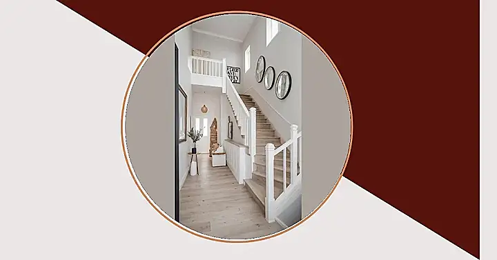 Notice those awesome round mirrors cruising up the staircase? They’re not just for last-minute selfie checks; they’re actually magic, bouncing all that natural light around and making the whole place feel even bigger and brighter! And that little plant chilling on the side table? It’s probably the chillest plant ever, perfectly placed to add a touch of green without going overboard – super typical of Nordic design where less is definitely more. It’s like this space whispers, “Relax, everything’s going to be okay,” which is a pretty sweet superpower for a hallway to have.