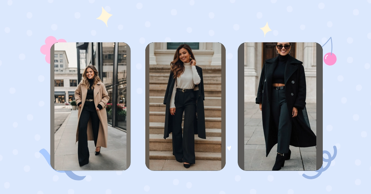 Hey there, fashion-forward friend! November’s got that chilly vibe going on, but that doesn’t mean your style has to hibernate! This picture totally nails the “November casual outfits” look. Check out that camel-colored coat – seriously cozy and perfect for warding off those autumn chills. Paired with those light-wash jeans and stylish ankle boots, it’s like a comfy hug for your legs, but way more fashionable. Plus, the cute little handbag adds a pop of sophistication. Who says casual can’t be chic?