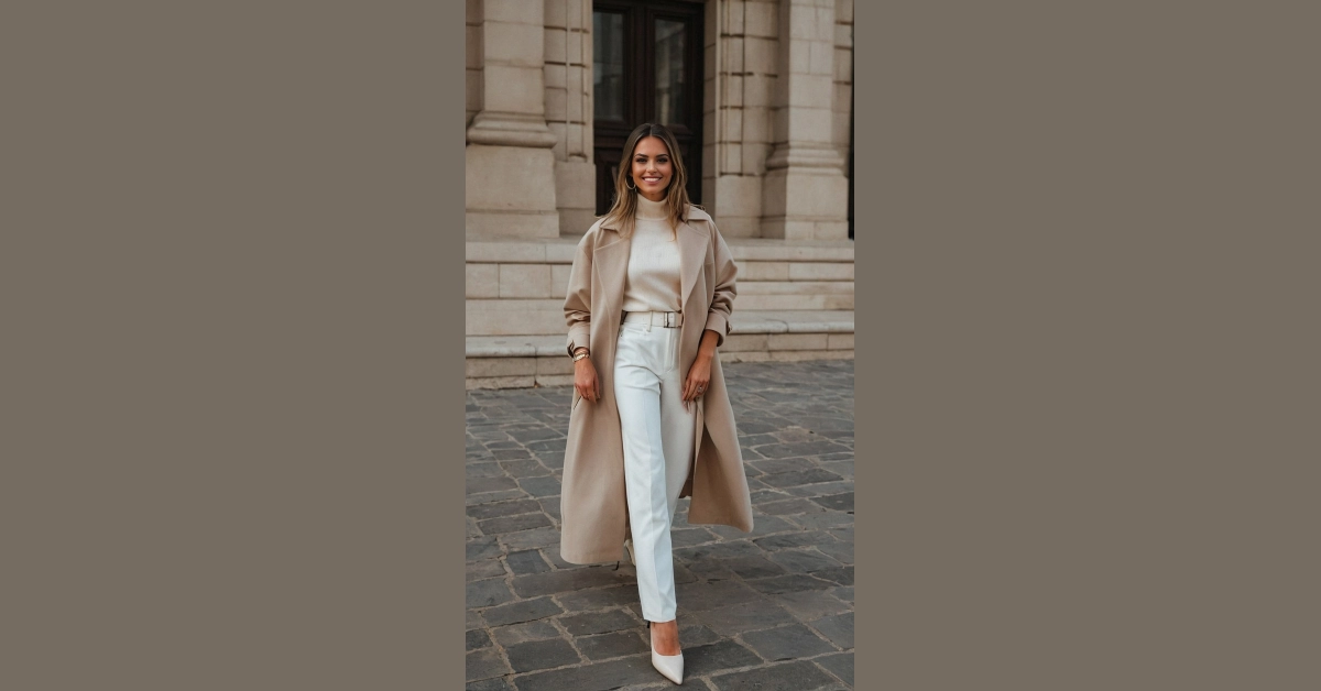 Hey there, fashion friends! November’s here, which means goodbye pumpkin spice lattes (okay, maybe not *goodbye*!), and hello to cozy, casual outfits that won’t leave you shivering. This picture shows the perfect example! Imagine strolling through a fancy city (maybe Paris?!) looking effortlessly stylish in a long, beige trench coat. It’s like wearing a giant, comfy hug that’s also super chic. Pair it with some dark jeans and white sneakers – boom! You’re ready to conquer November’s chilly breezes and look amazing doing it. Who needs a bulky winter jacket when you have this stylish armor?
