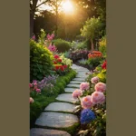This garden is like a secret escape! Imagine strolling down that winding path, past all the vibrant flowers and lush green trees. You’d feel like you were in a fairy tale, surrounded by magic and wonder. The stone path is like a guide, leading you through a maze of vibrant colors and captivating scents. And who knows what magical secrets this garden might hold? Maybe a talking frog, or a mischievous gnome hiding in the bushes?