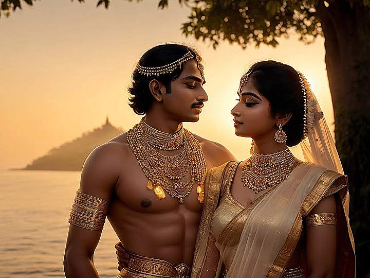 One day, he and his men arrived on a mysterious island. It was there he met Kuveni, a beautiful and enchanting Yaksha princess. With her captivating grace and radiant beauty, she was a vision that held Vijaya spellbound.